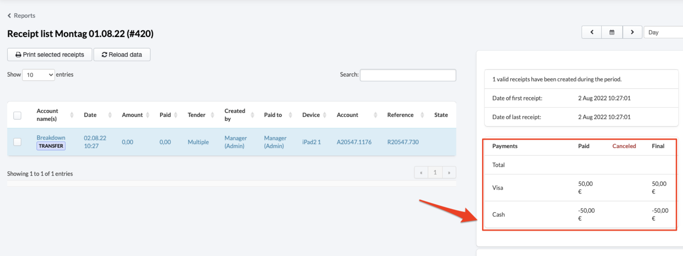 ℹ️ In the receipts list, you will find a receipt for £0 showing these movements.
